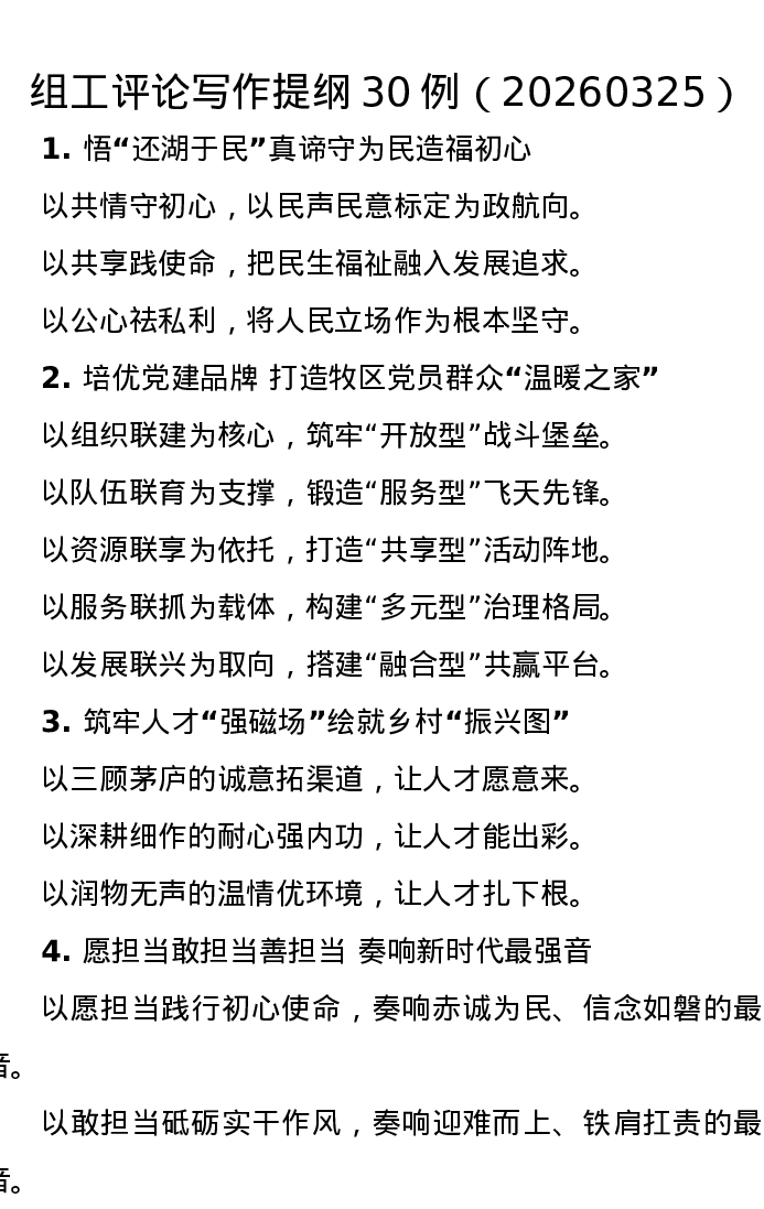 组工评论写作提纲30例(20260325)