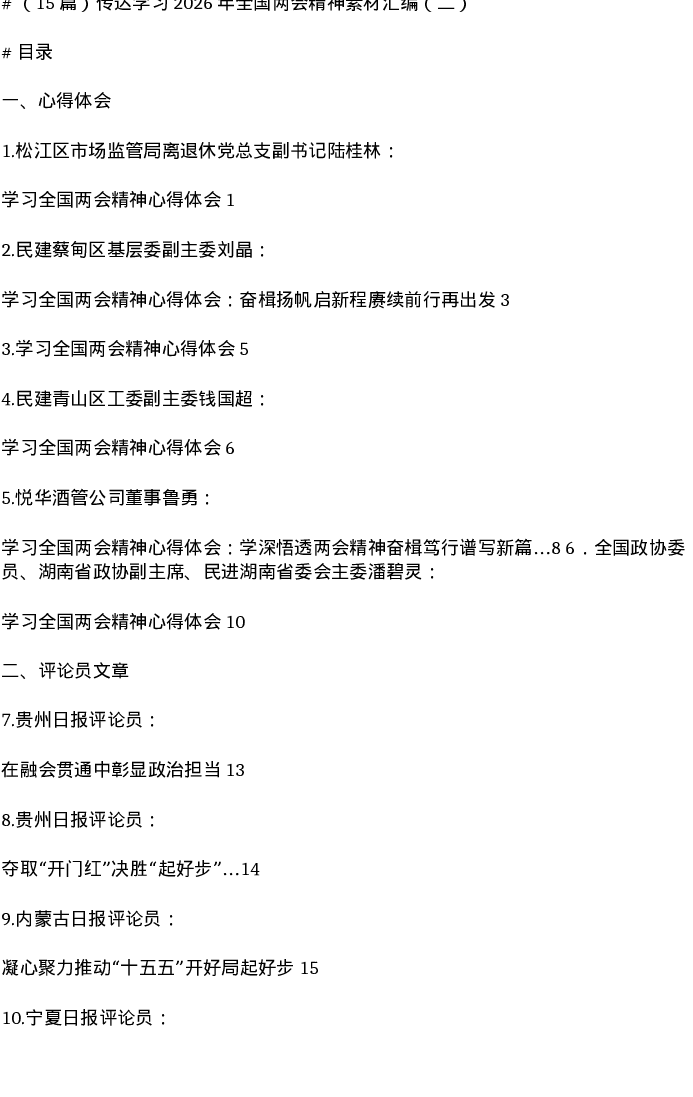 汇编:传达学习2026年全国两会精神素材汇编(二)15篇