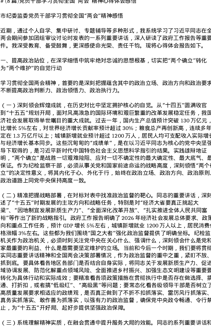 汇编:党员干部学习贯彻全国两会精神心得体会感悟8篇