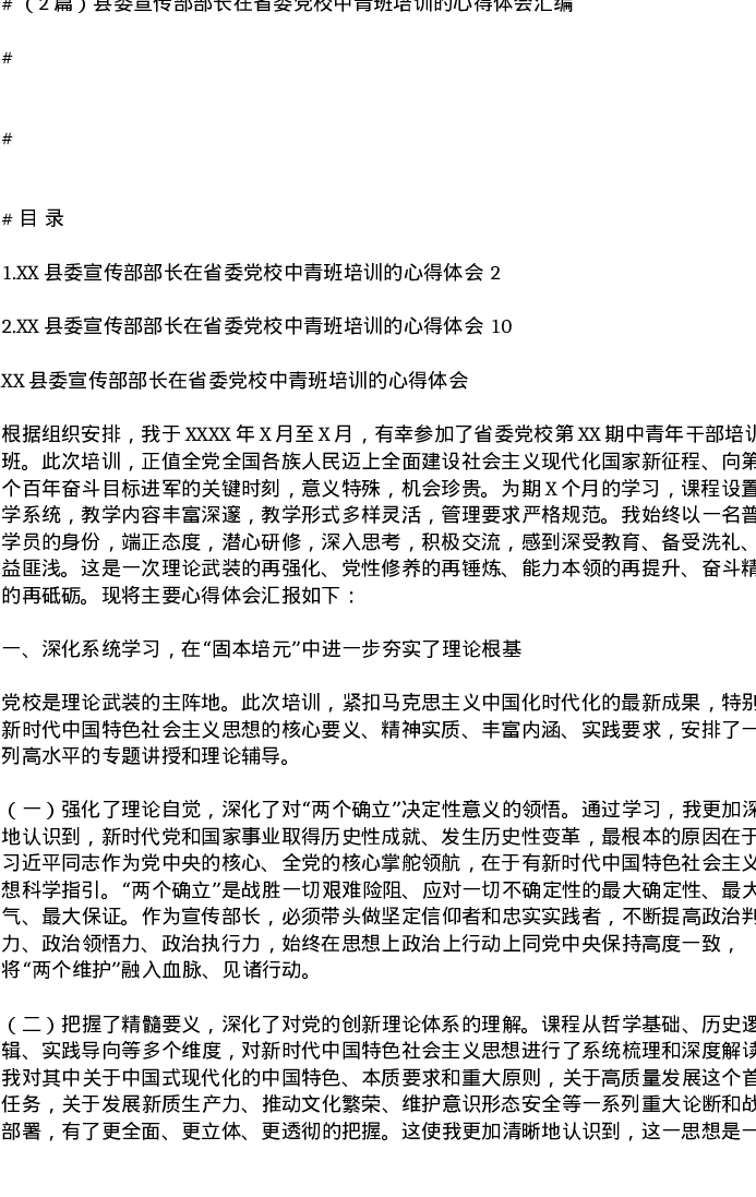 汇编:县委宣传部部长在省委党校中青班培训的心得体会2篇