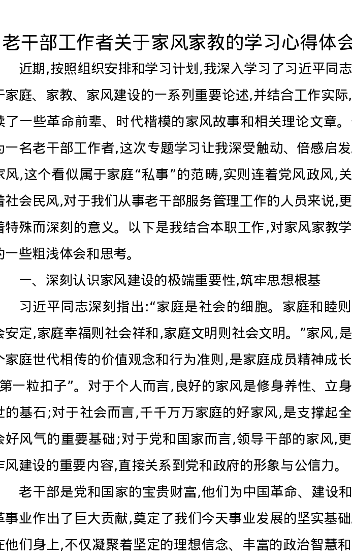 老干部工作者关于家风家教的学习心得体会
