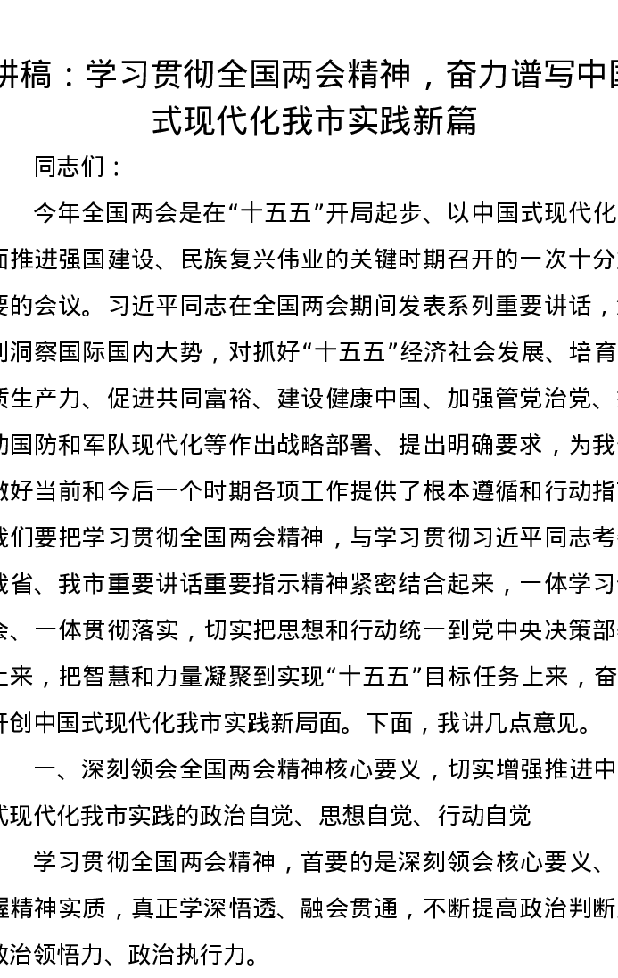 党课讲稿:学习贯彻全国两会精神,奋力谱写中国式现代化我市实践新篇
