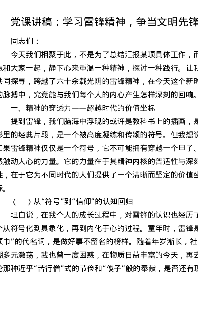 党课讲稿:学习雷锋精神,争当文明先锋