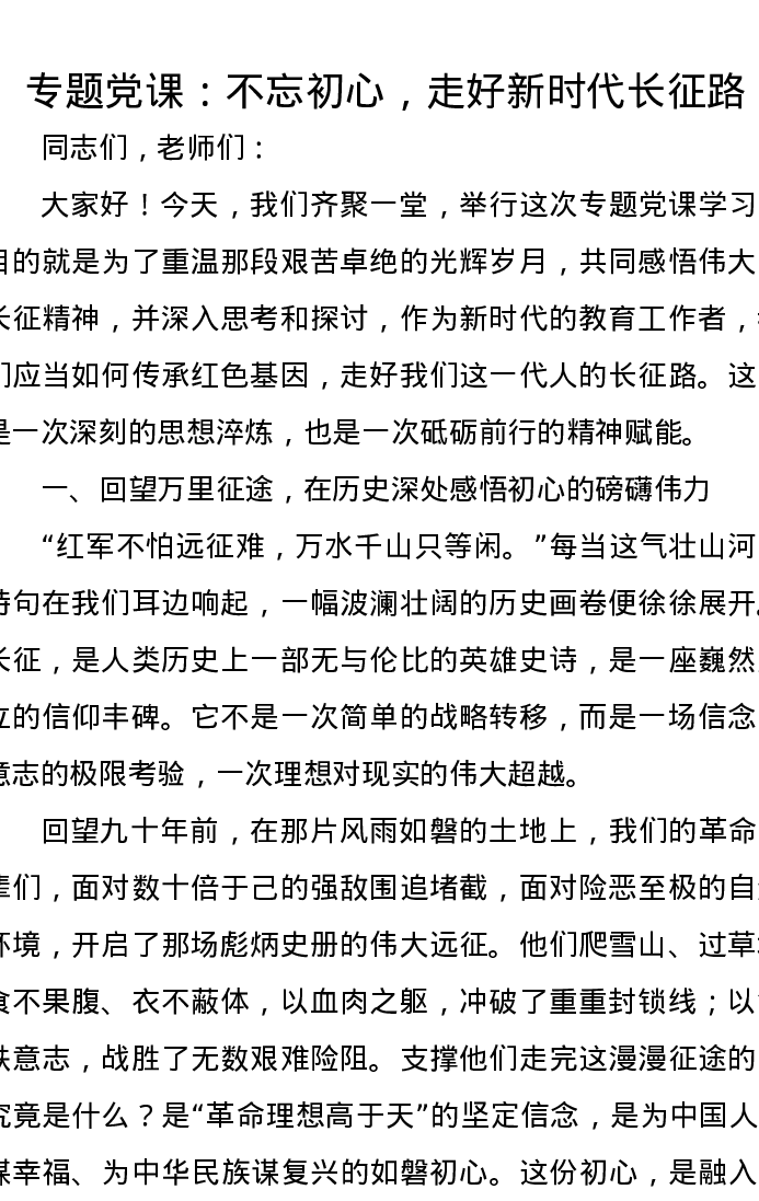 专题党课:不忘初心,走好新时代长征路