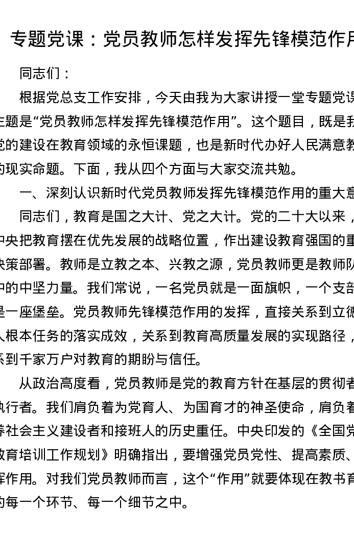 专题党课:党员教师怎样发挥先锋模范作用
