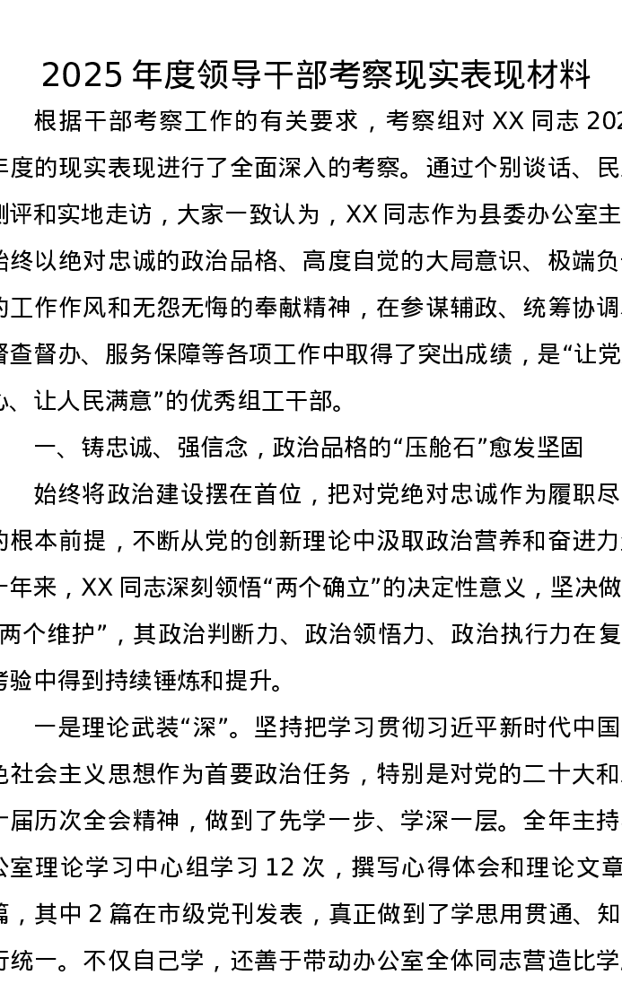 2025年度领导干部考察现实表现材料