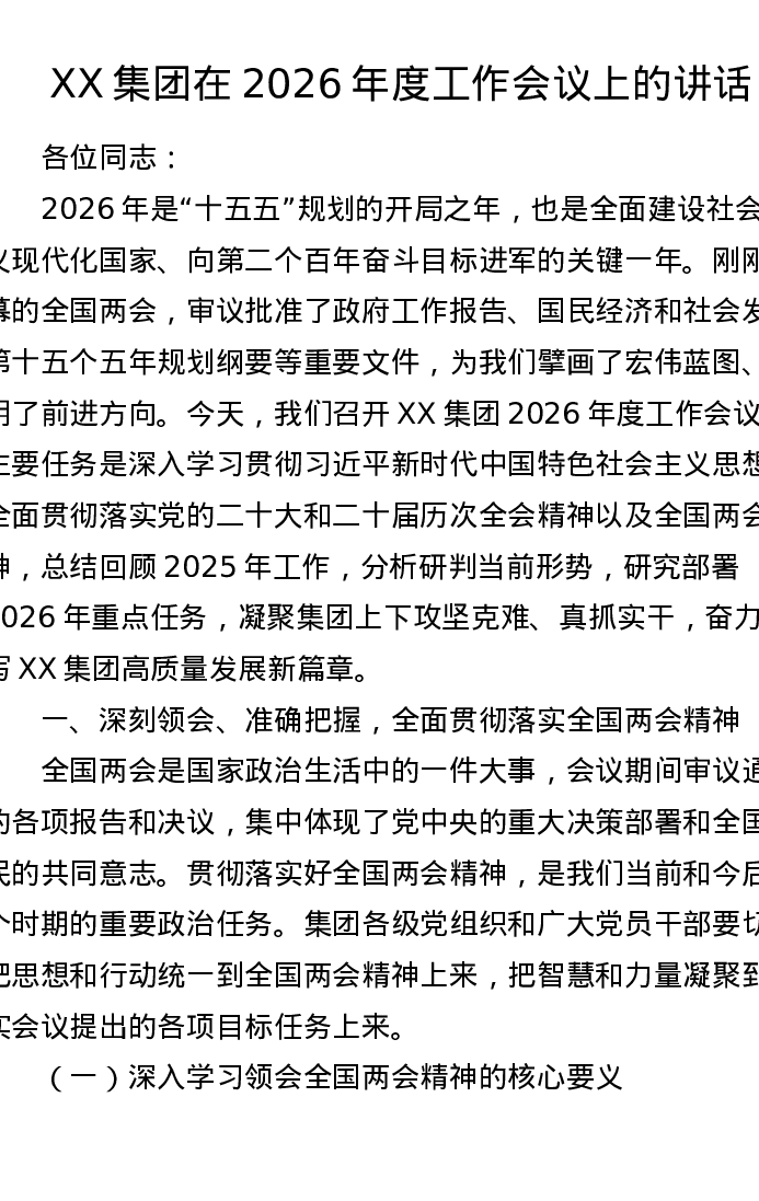 XX集团在2026年度工作会议上的讲话