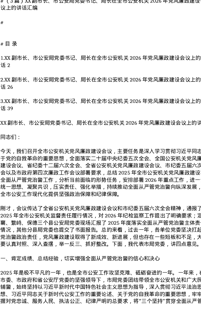 汇编:XX副市长、市公安局党委书记、局长在全市公安机关2026年党风廉政建设会议上的讲话3皮娜