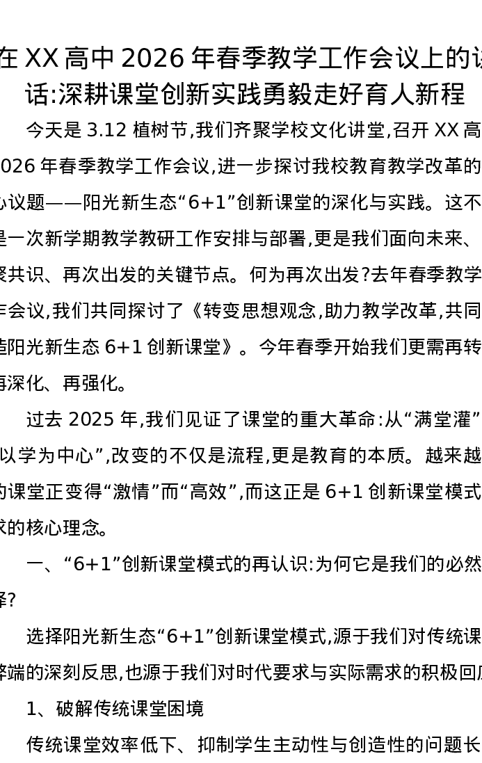 在XX高中2026年春季教学工作会议上的讲话深耕课堂创新实践勇毅走好育人新程