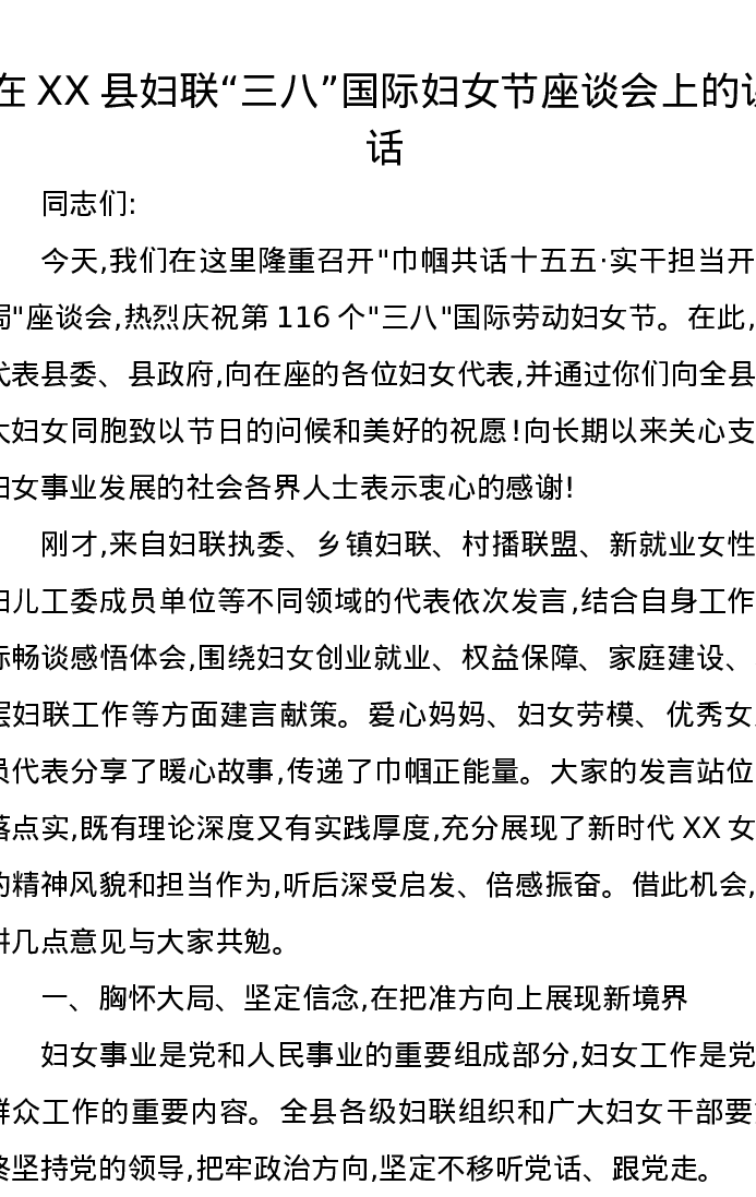 在XX县妇联三八国际妇女节座谈会上的讲话