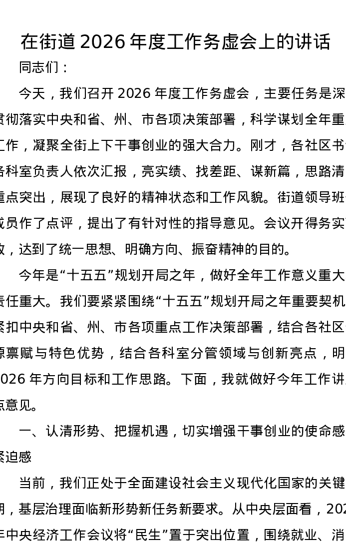 在街道2026年度工作务虚会上的讲话