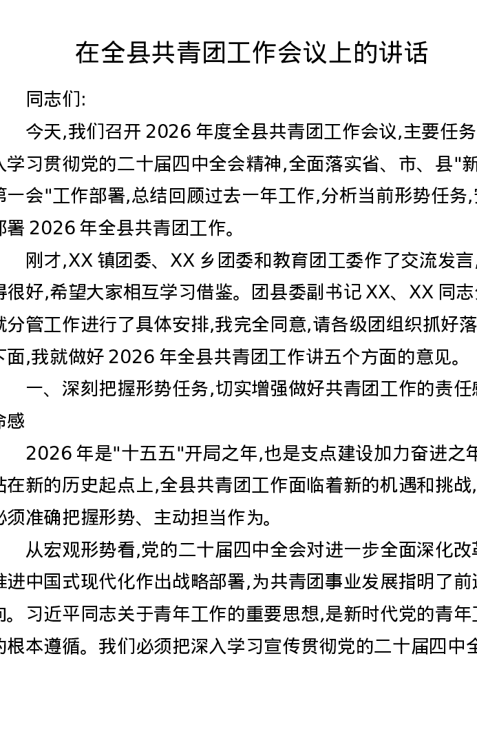 在全县共青团工作会议上的讲话