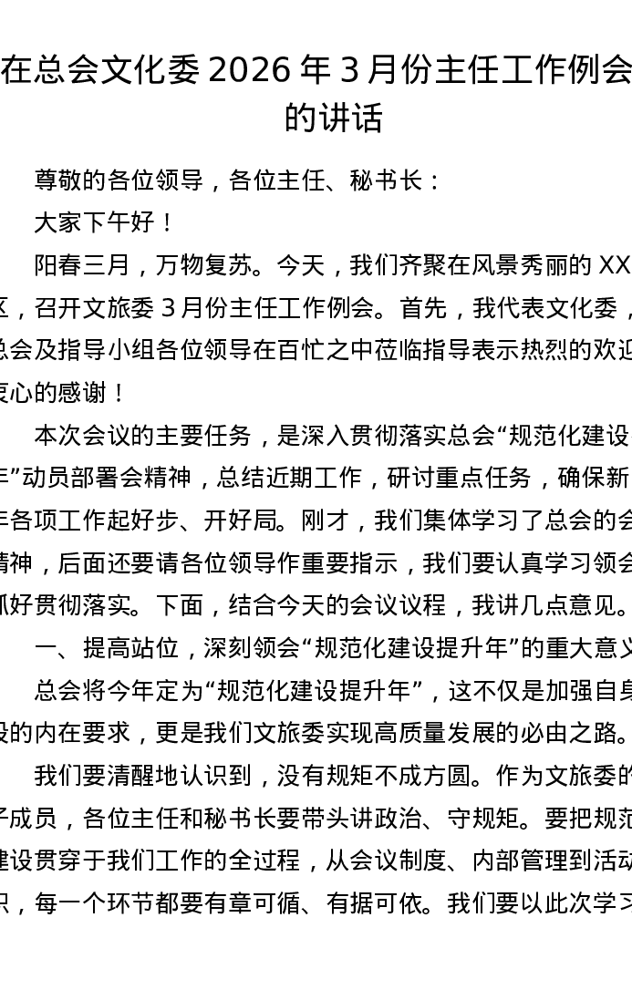 在总会文化委2026年3月份主任工作例会上的讲话