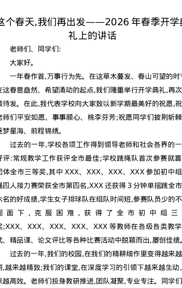 这个春天,我们再出发——2026年春季开学典礼上的讲话