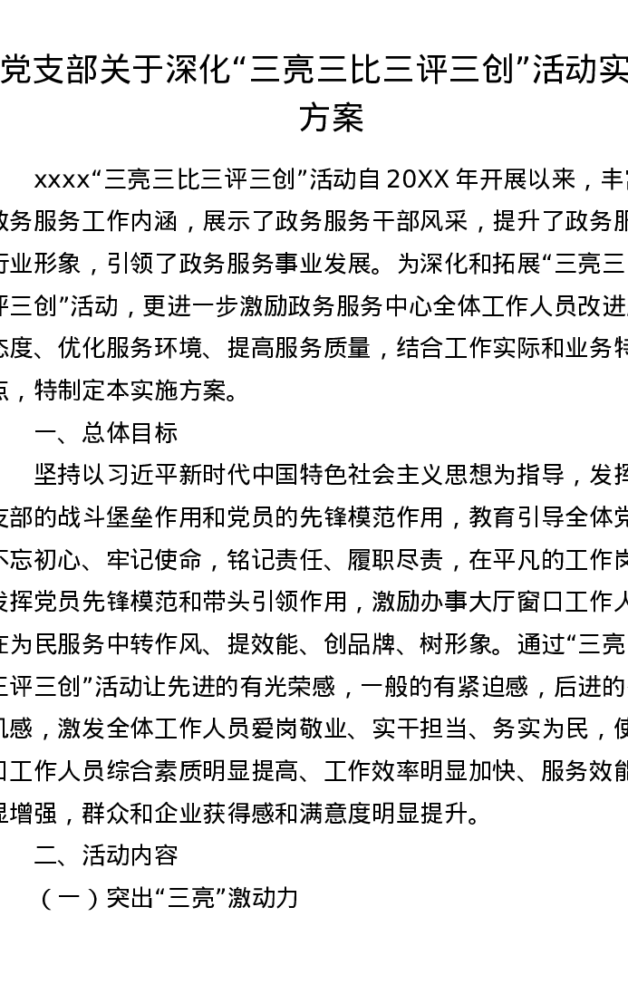 党支部关于深化三亮三比三评三创活动实施方案