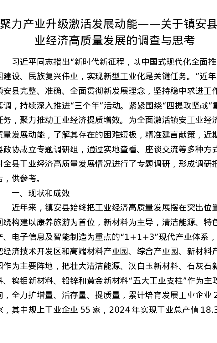 聚力产业升级 激活发展动能——关于镇安县工业经济高质量发展的调查与思考