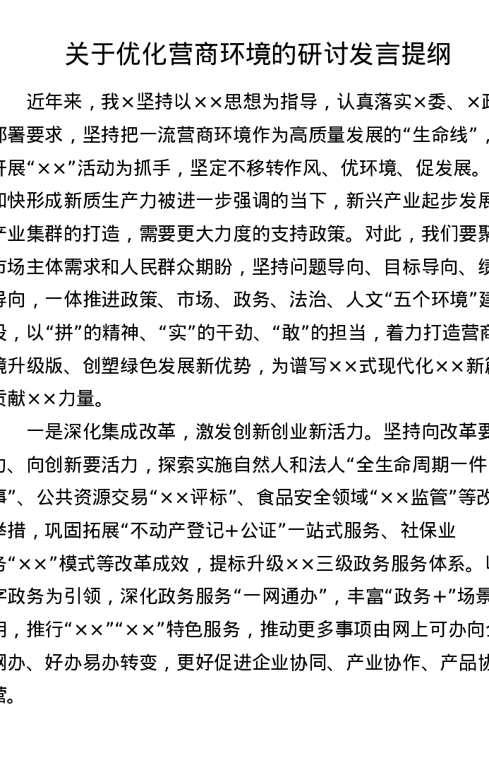 调研报告:关于优化营商环境的研讨发言提纲
