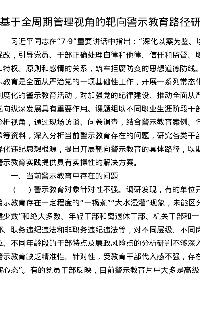 调研报告:基于全周期管理视角的靶向警示教育路径研究