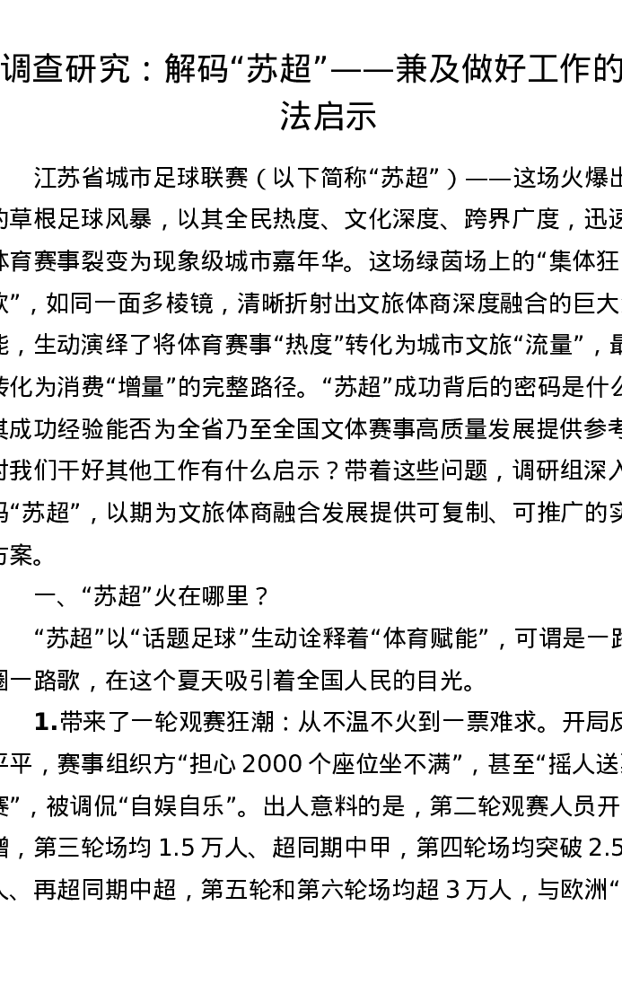 调研报告:解码苏超——兼及做好工作的方法启示