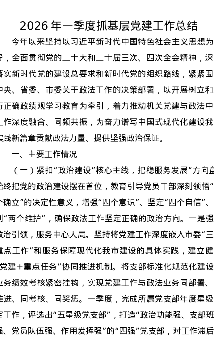 2026年一季度抓基层党建工作总结