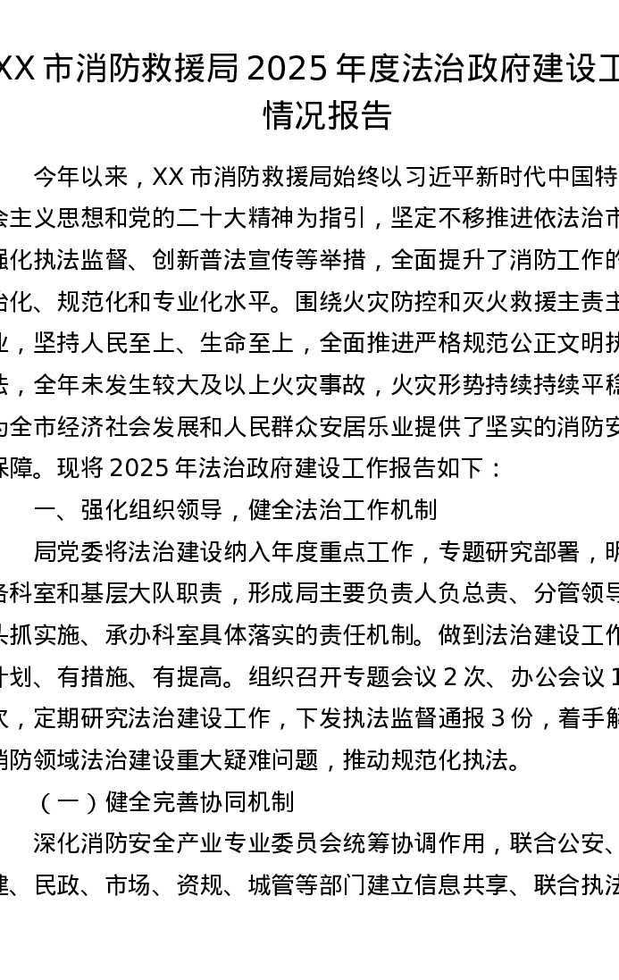 XX市消防救援局2025年度法治政府建设工作情况报告