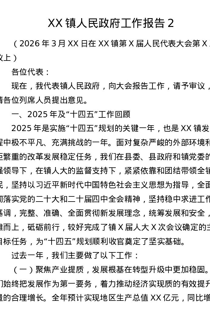 XX镇人民政府工作报告2