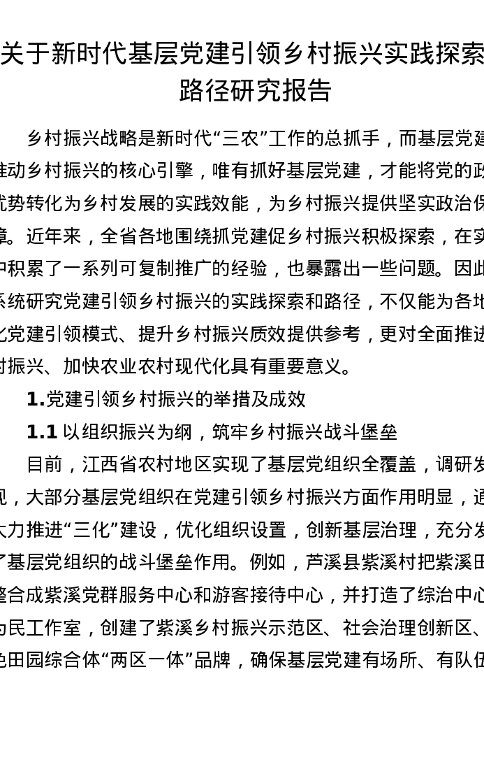 关于新时代基层党建引领乡村振兴实践探索与路径研究报告