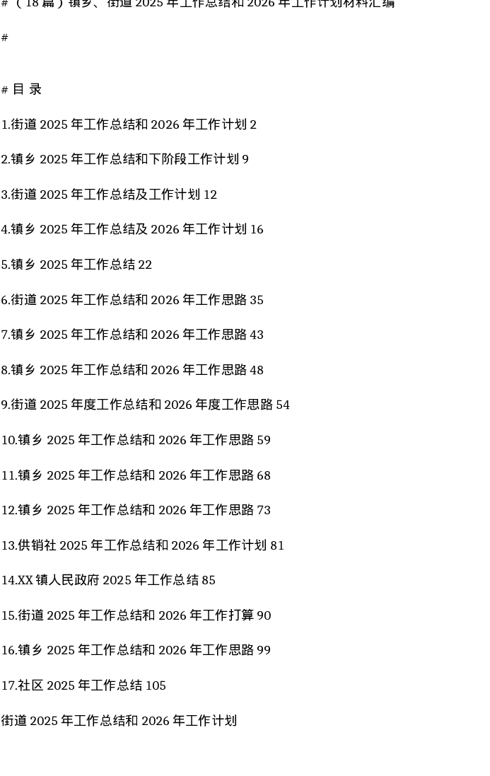汇编:镇乡、街道2025年工作总结和2026年工作计划18篇