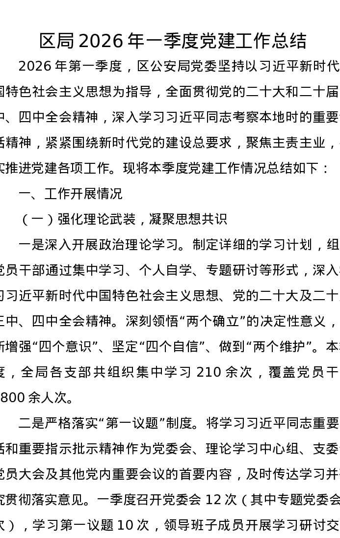 区局2026年一季度党建工作总结