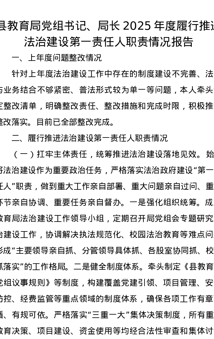 县教育局党组书记、局长2025年度履行推进法治建设第一责任人职责情况报告