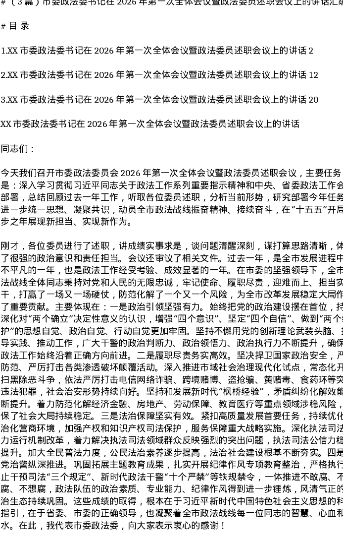汇编:市委政法委书记在2026年第一次全体会议暨政法委员述职会议上的讲话3篇