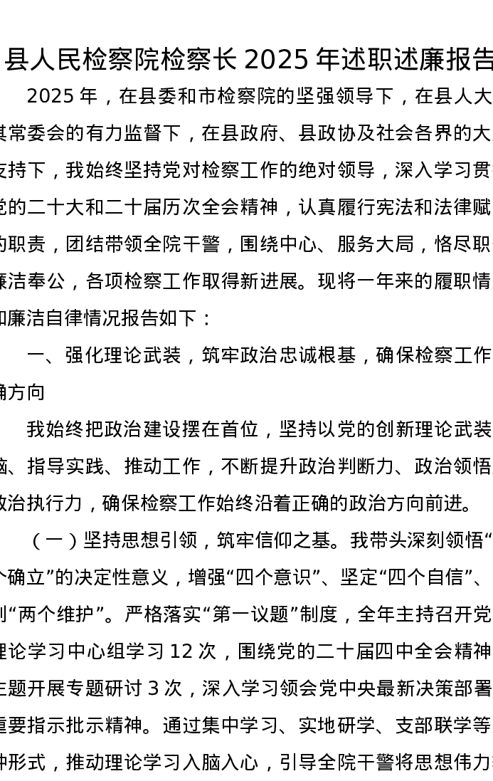县人民检察院检察长2025年述职述廉报告