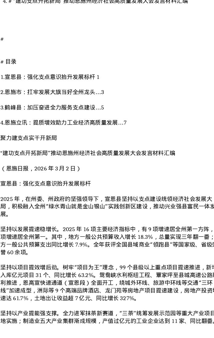 汇编:建功支点开拓新局推动恩施州经济社会高质量发展大会发言材料4篇