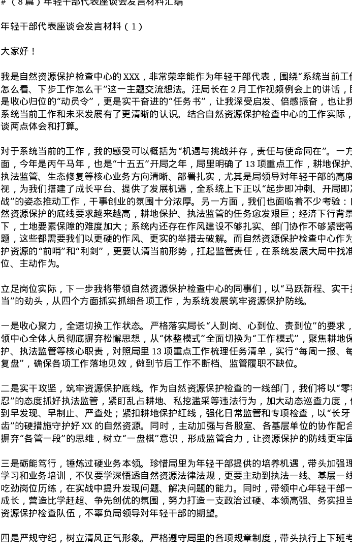汇编:年轻干部代表座谈会发言8篇