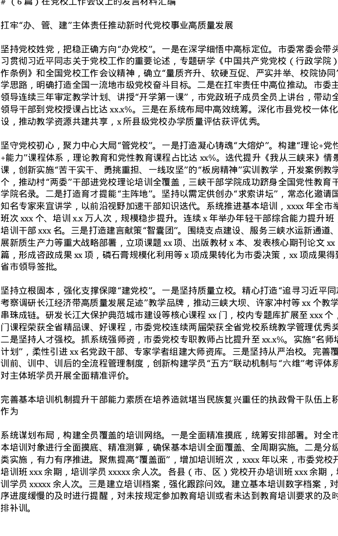 汇编:在党校工作会议上的发言6篇
