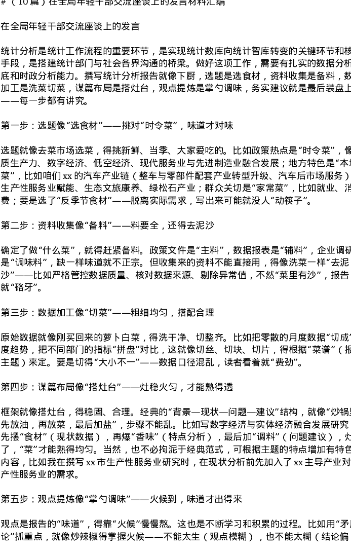 汇编:在全局年轻干部交流座谈上的发言10篇