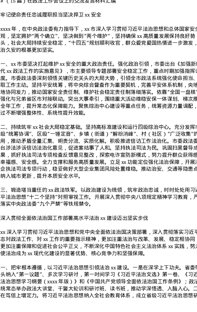 汇编:在政法工作会议上的交流发言15篇