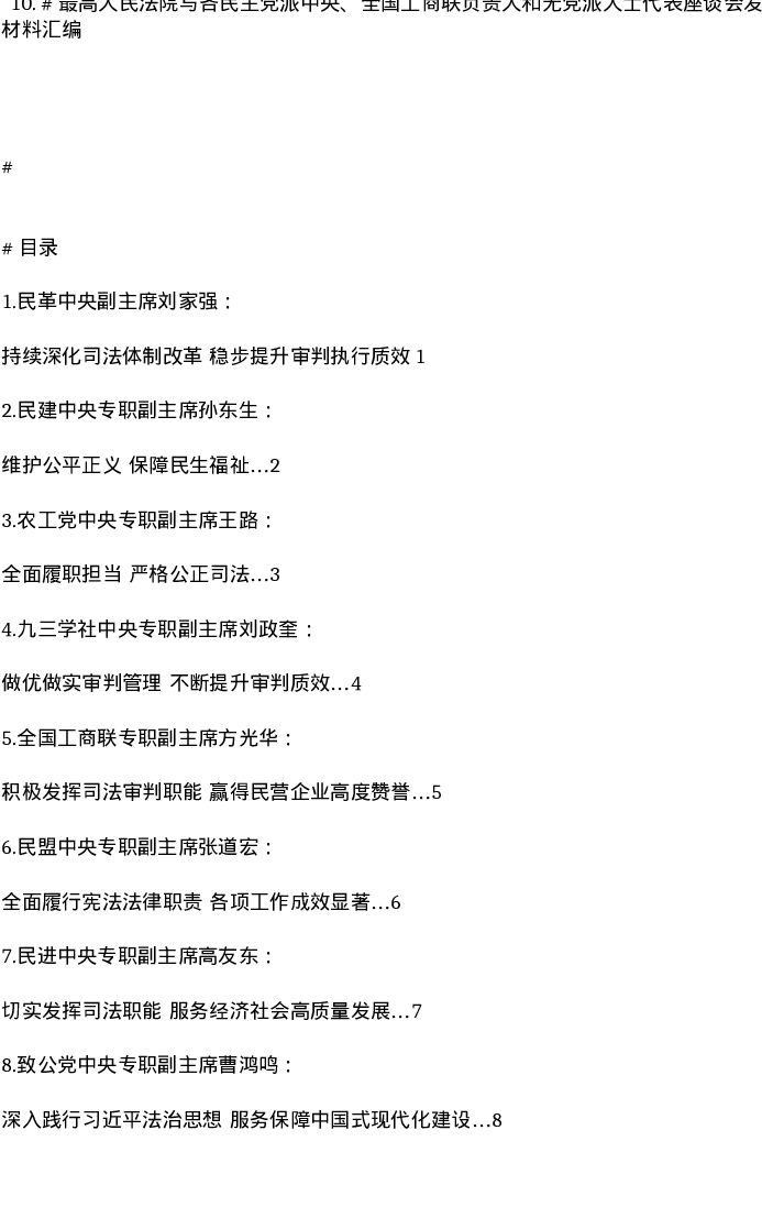 汇编:最高人民法院与各民主党派中央、全国工商联负责人和无党派人士代表座谈会发言10篇