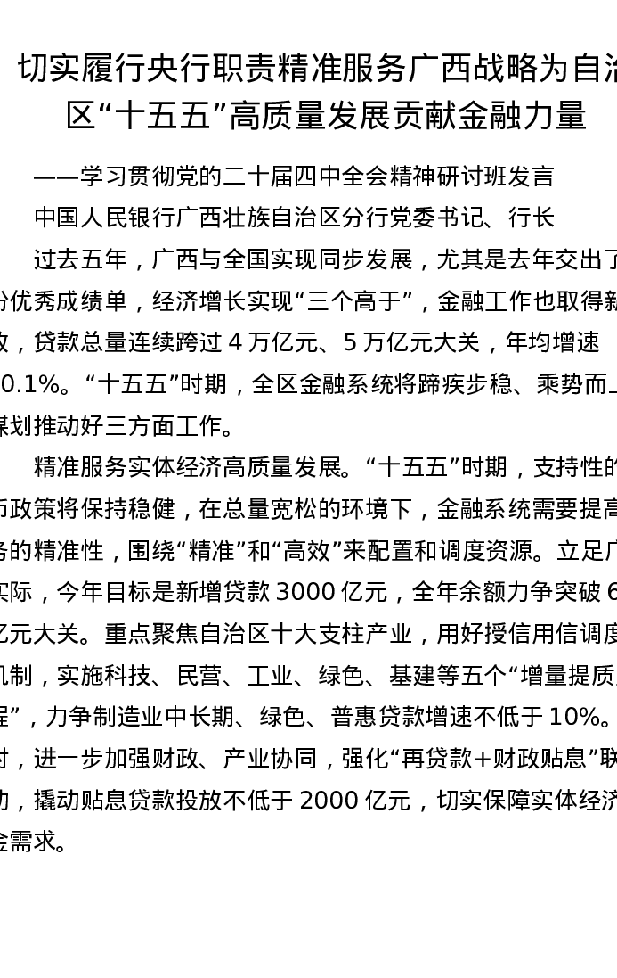 切实履行央行职责精准服务广西战略为自治区十五五高质量发展贡献金融力量