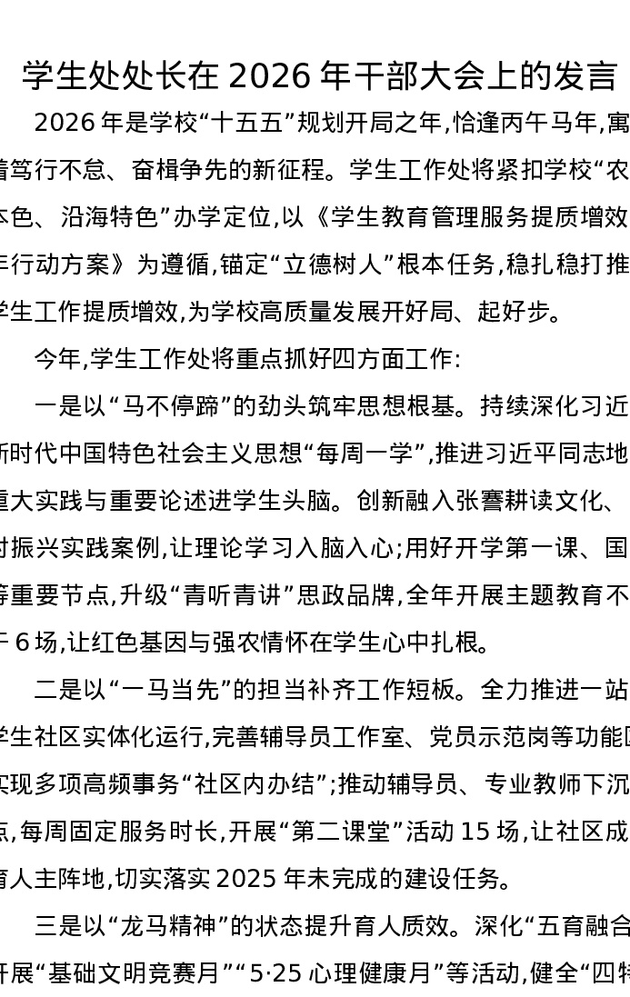 学生处处长在2026年干部大会上的发言