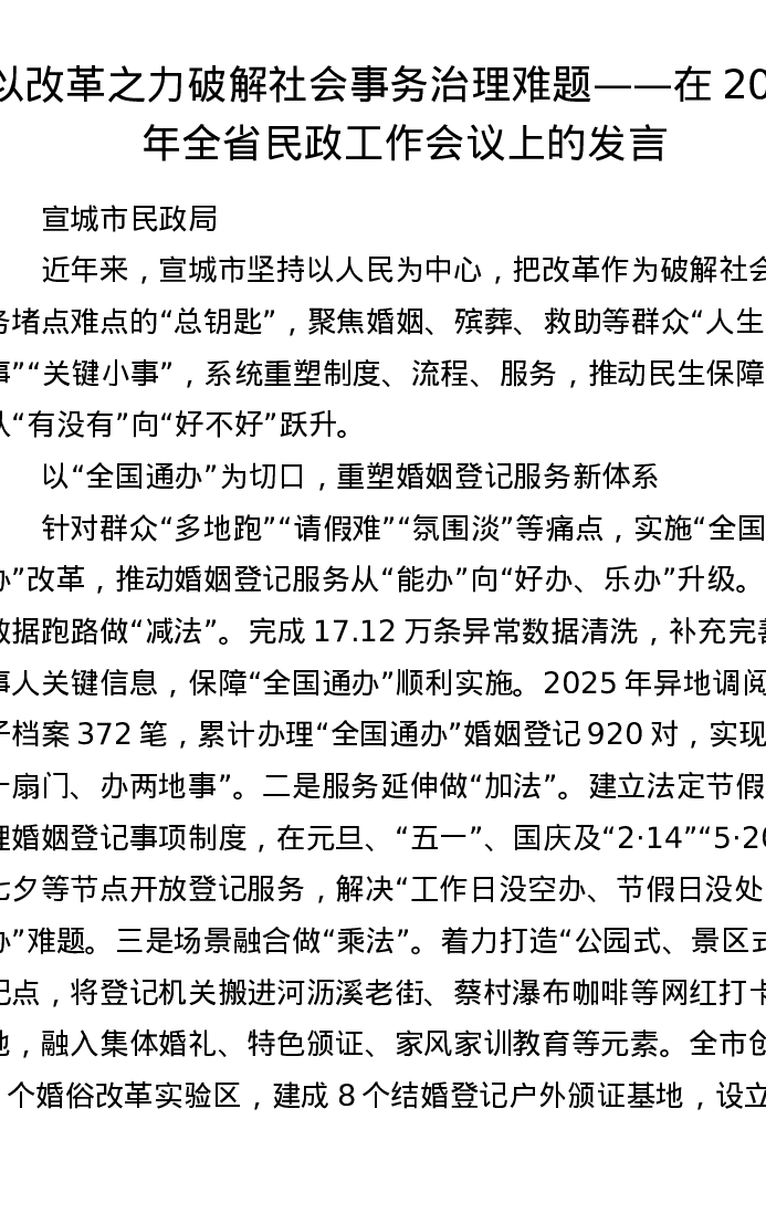 以改革之力破解社会事务治理难题——在2026年全省民政工作会议上的发言