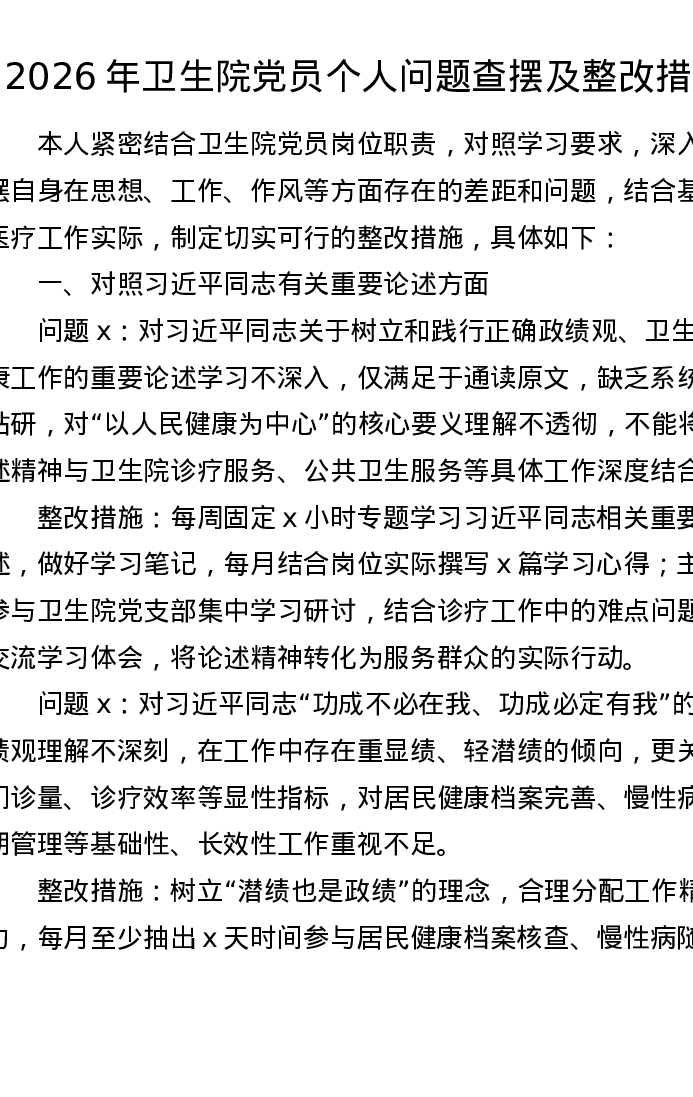 2026年卫生院党员个人树立和践行ZJG学习教育问题查摆及整改措施