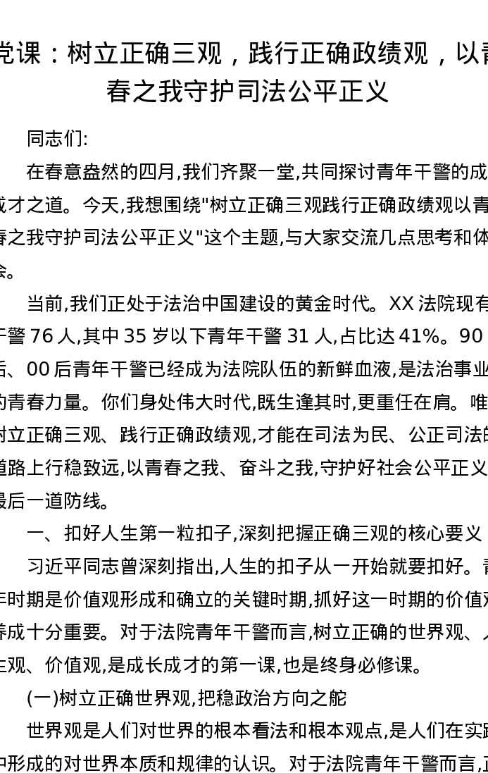 党课:树立正确三观,践行正确ZJG,以青春之我守护司法公平正义