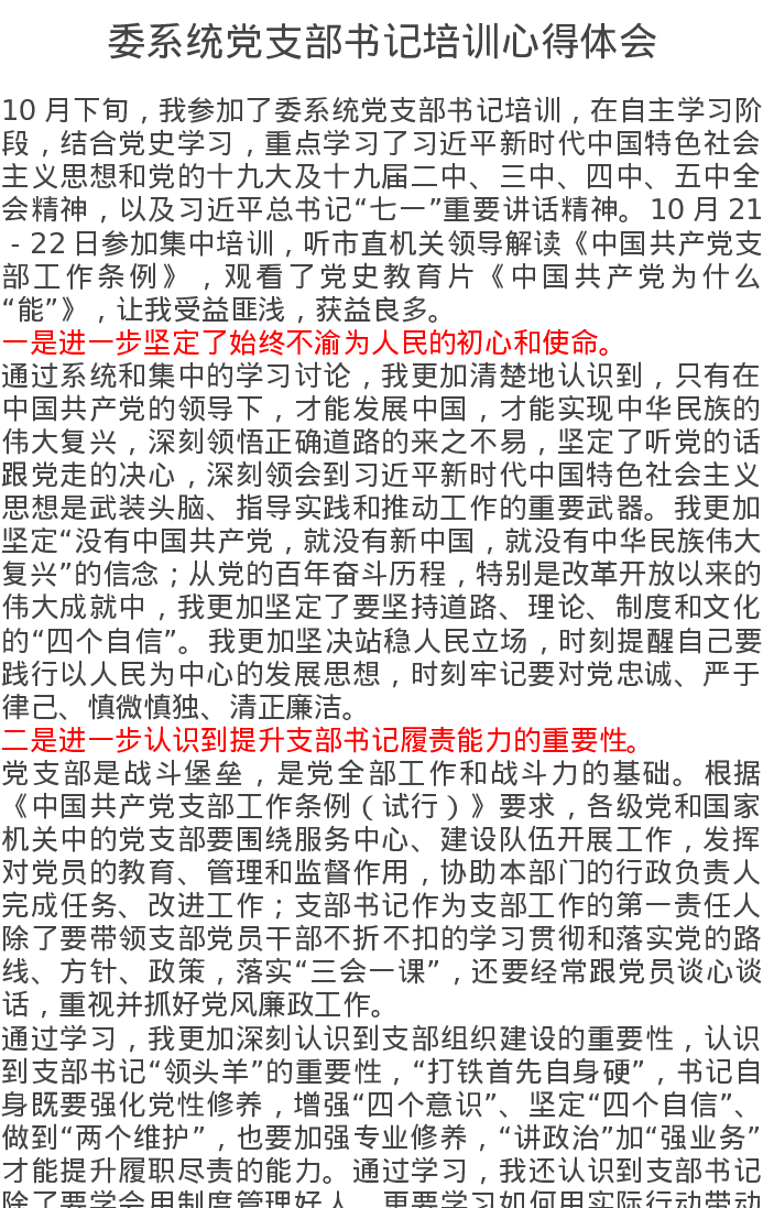 委系统党支部书记培训心得体会