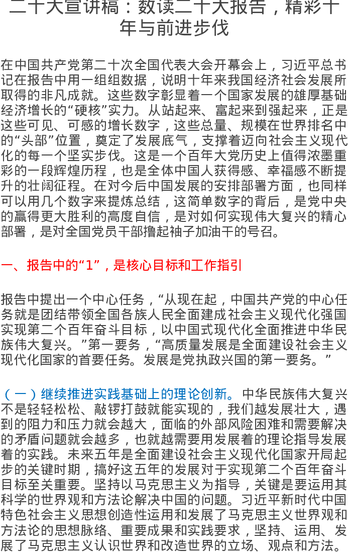 二十大宣讲稿:数读二十大报告,精彩十年与前进步伐
