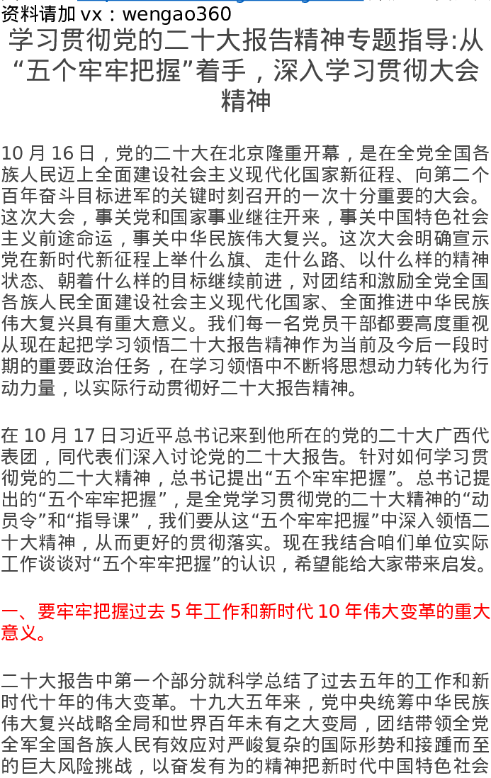 学习贯彻党的二十大报告精神专题指导从“五个牢牢把握”着手,深入学习贯彻大会精神