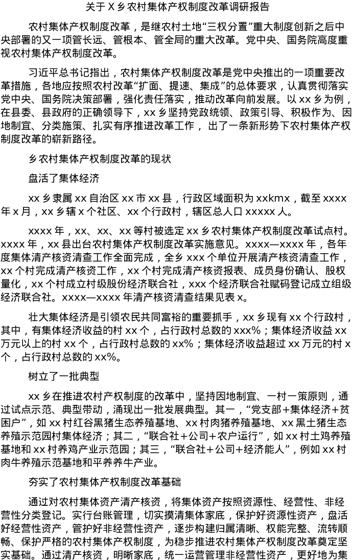 20220323关于X乡农村集体产权制度改革调研报告