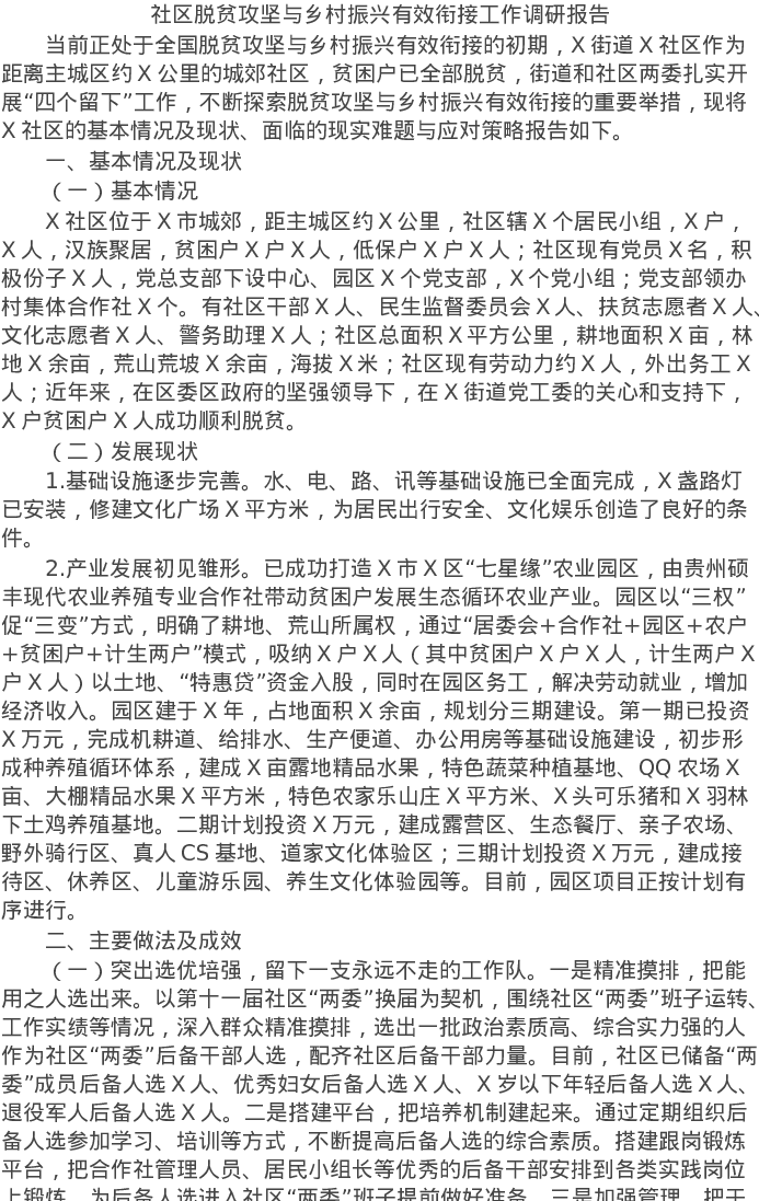 20220406社区脱贫攻坚与乡村振兴有效衔接工作调研报告