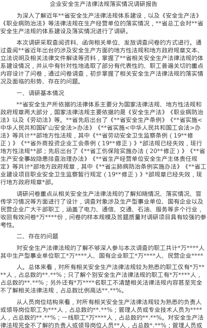 20220519企业安全生产法律法规落实情况调研报告