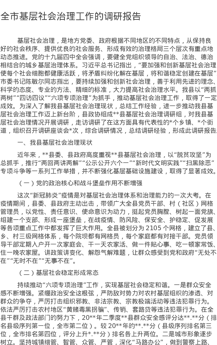 20220525全市基层社会治理工作的调研报告